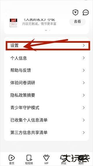 切换到另一个页面后,在页面中选择【设置】并点击。