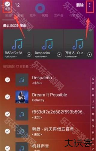 进入本地音乐界面,按住一个音乐不放手,直到出现复选框