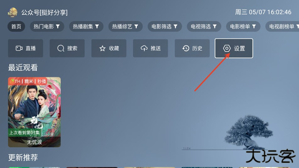 1.在主页面点击设置按钮。