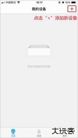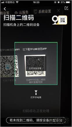 3、登录APP后,点击设备主界面右上角【+】,扫描录像机背面或包装盒上的二维码(也可以扫描录像机界面【设置 > 云服务】中右边的二维码):