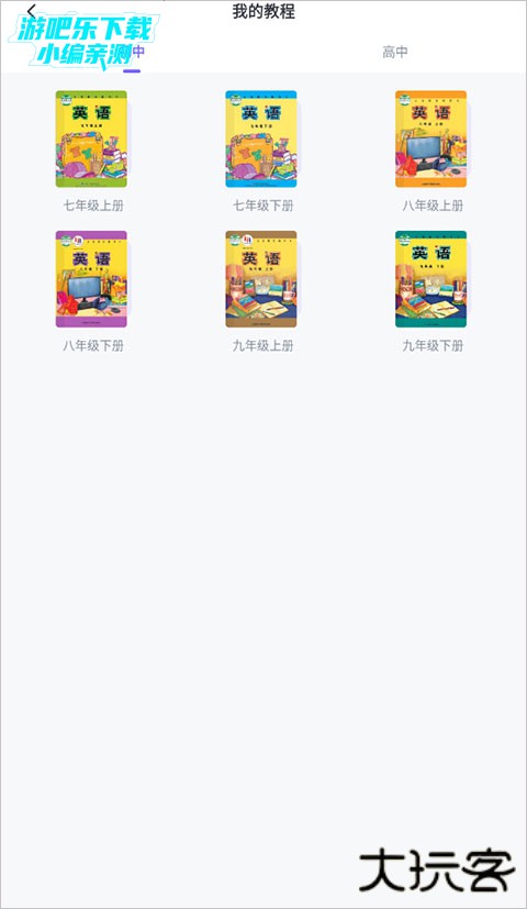 3、在选择教材页面即可看到初中、高中的课本,点击即可进行切换查看。
