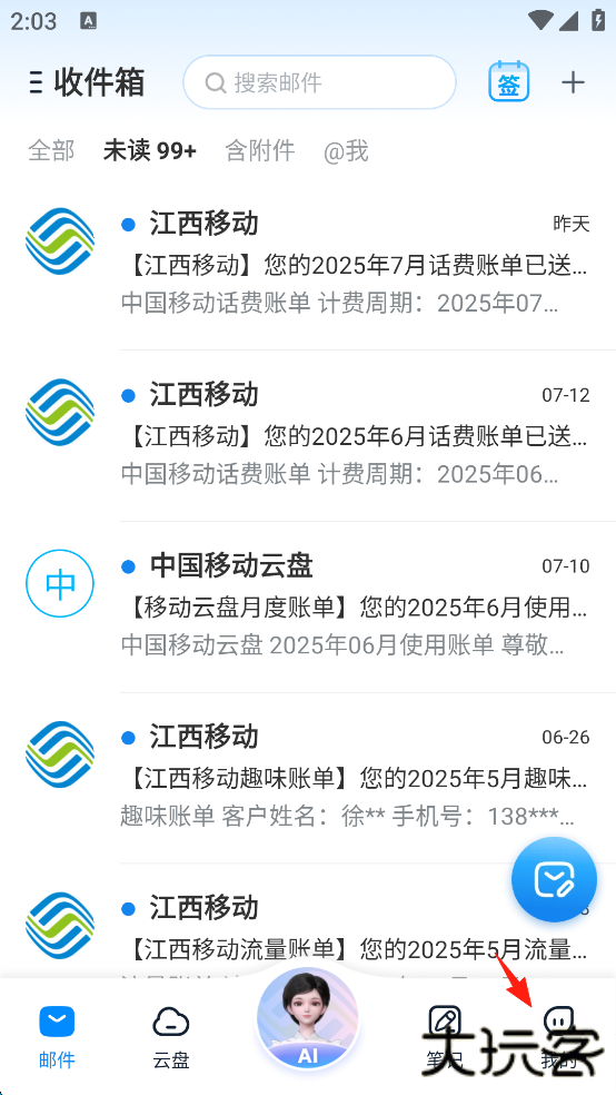 中国移动用户福利:点击“我的”,随时随地轻松查看话费账单,让您用得更舒心,更省心!