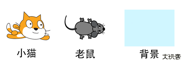 1个小猫角色、1个老鼠角色以及需要一个活动场景(即背景)。