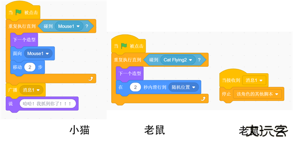 2、分别选择小猫和老鼠的编程代码。