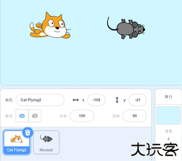 1、设置好小猫和老鼠角色,并设置好背景图。