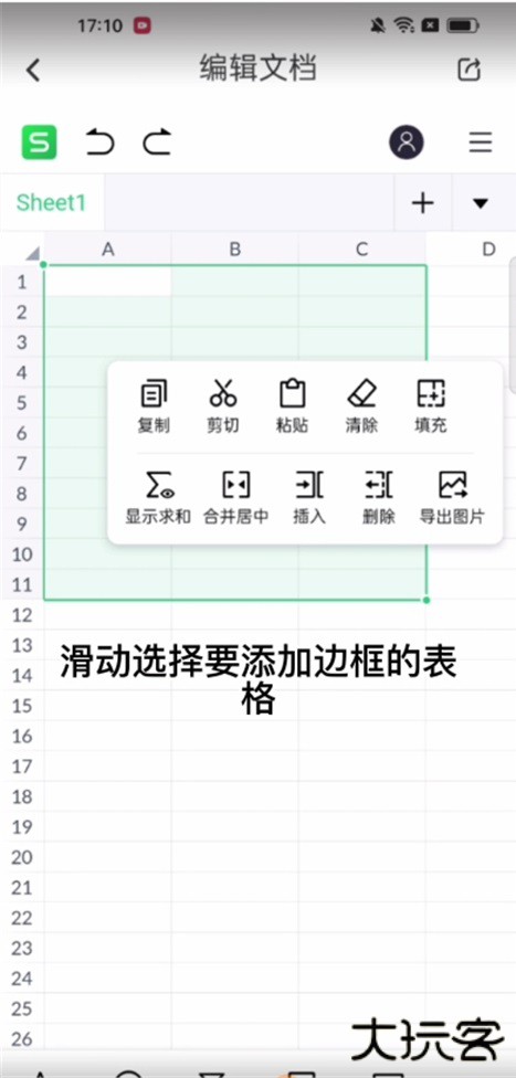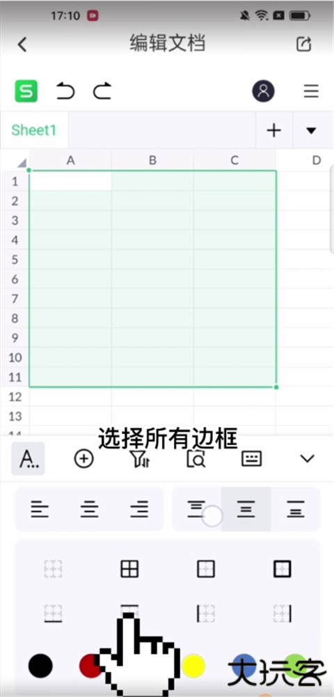 2、滑动选择要添加边框的表格,点击底部的第一个选项。