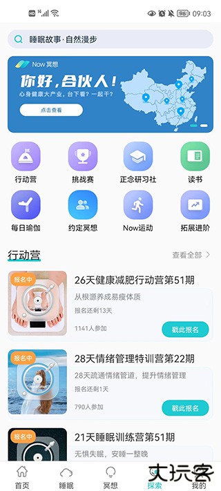 在该模块中,最有吸引的一幕应该是软件中的训练营,不仅有专业的健康减肥周期计划,还拥有解压课程。