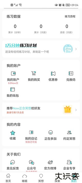 在我的中,用户可以随时随地的去查看我的账户和我的日记以及约定的冥想周期计划。