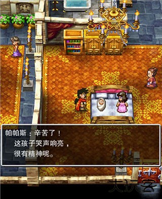 之后屏幕一黑,画面转到了一个简陋的房间中,原来是我们的主角在做梦,而他就是刚才梦中生出的小孩,他的爸爸帕帕斯则是国王。与爸爸对话后,他会叫们出去到处看看
