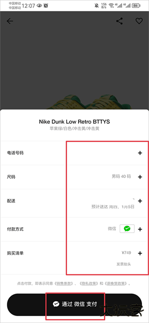 4、将配送地址、电话、付款方式选择完成后点击支付