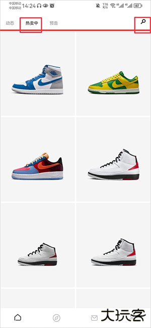1、打开SNKRS中国app,在热卖中筛选出你喜欢的鞋子,也可以通过右上角搜索鞋子进行购买