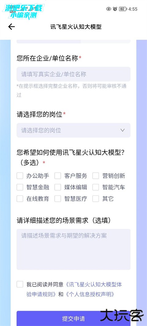 2、然后填写好相关的信息之后点击提交申请。