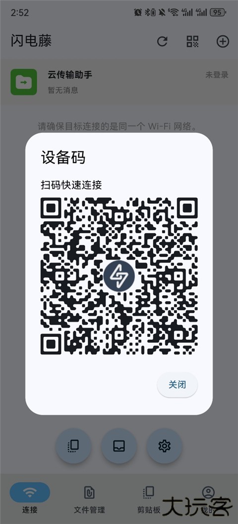 2、如果没互相发现的话,可以采用扫码进行连接,扫码功能在主页的右上角。