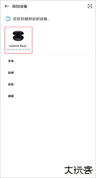 4、然后选择附件设备,手机会自动搜索附近所有的realme IOT设备,搜索到附近的设备后点击其中你想要连接的设备进行配对。