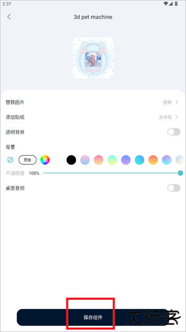 2、设置小组件样式,完成后,点击保存组件