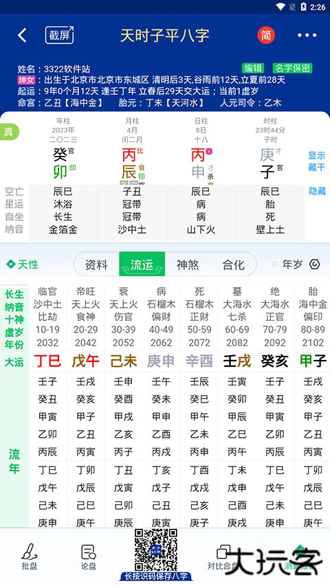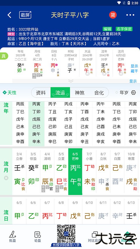 3、强大的大运流年分析功能