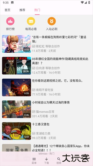 3、进入热门,给你带来相应的排行榜以及每周必看、入站必刷的内容。