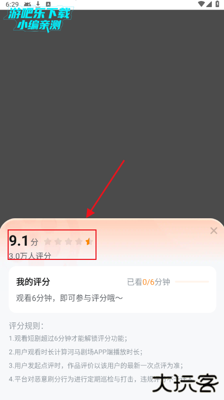 1.观看短剧超过6分钟才能解锁评分功能;