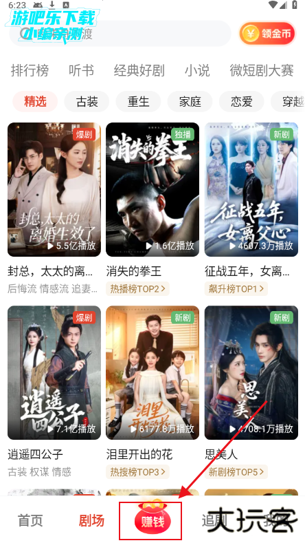 1、找到赚钱板块,点击进去,
