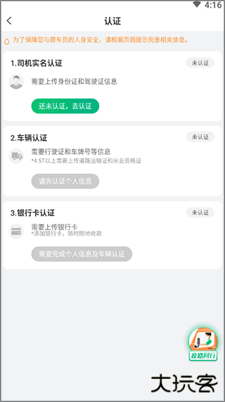 1、下载安装好运荔枝货运司机版,你需要完成认证才能进行接单。
