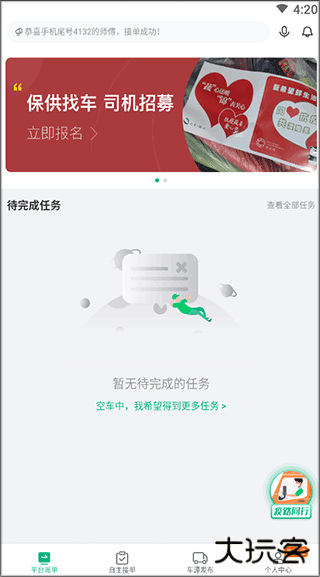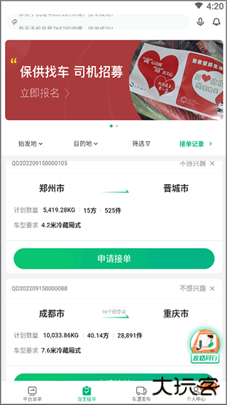 4、提供司机在线接单,在线查看订单始发目的地,及时高效完成货物配送。