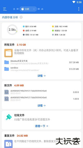 2、为用户提供文件的查找和管理,以及垃圾文件的清理,避免因垃圾文件占内存而给手机带来负担产生卡顿。