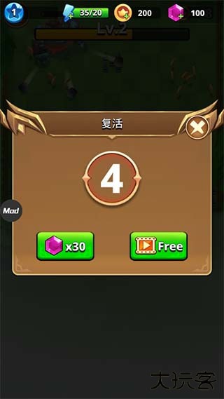 8、如果角色死亡可以选择使用道具或者观看广告来复活,否则就需从头开始游戏。