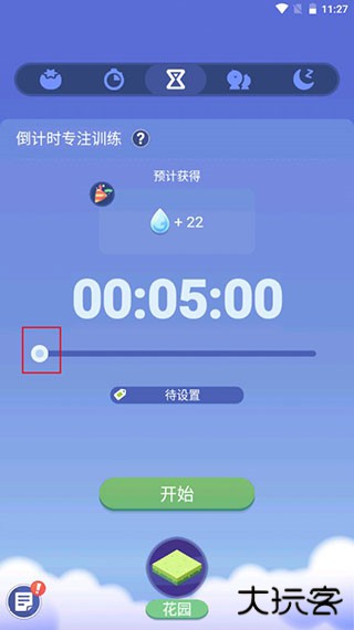 2、进入页面,在这里拖动滑块可以调节专注时间,点击开始,即可进入专注模式。