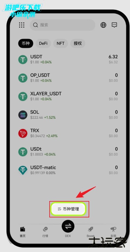 钱包的币种列表不会默认显示所有币种,您可能需要通过【币种管理】功能手动添加想要查看的币种到钱包代币列表中。