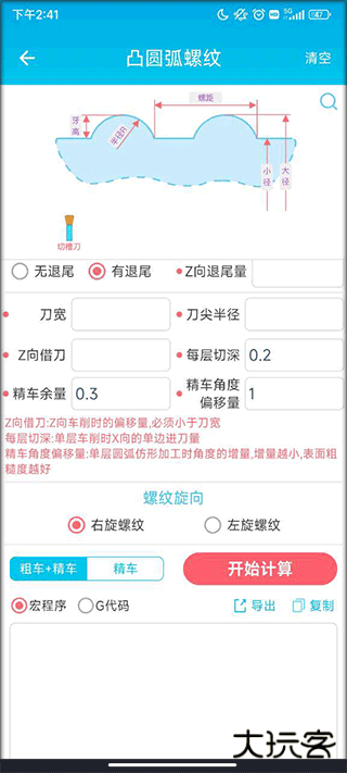 2. 螺纹计算:常见螺纹的查询和计算,并实时生成加工程序。