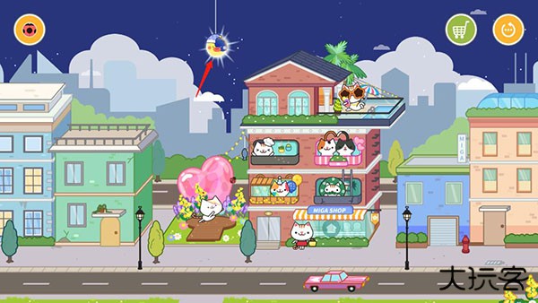 1、进入游戏,里面切换白天和晚上的模式,晚上时只要点击一下月亮就可以切换为白天模式;