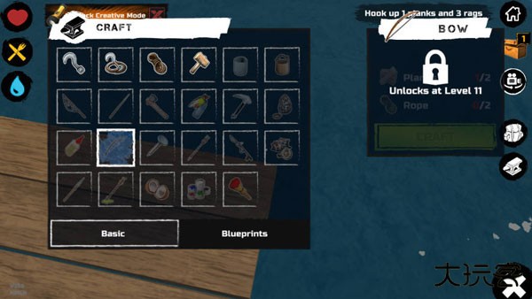 前期努力收集资源,先把木筏从2×2扩建到3×3,优先制造蒸馏器和烧烤炉,确保不会饿死或渴死。蒸馏器需要木头作为燃料,放入自制的杯子并倒入海水进行淡化。游戏中的烧烤方式和其他生存游戏不同:点燃一块木头后,不必烧完木头才能熄灭,只要烧烤完成,木头就会自动熄灭,省时又高效。
