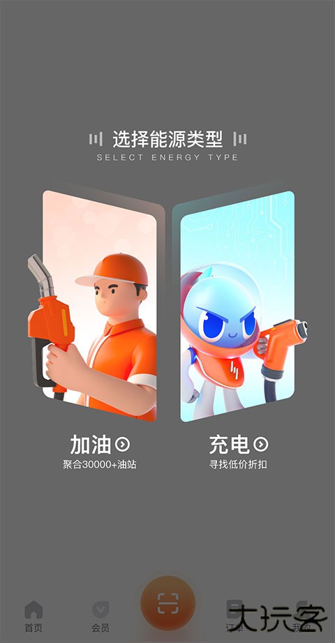1、首先我们根据自身实际情况选择【加油】或【充电】的能源类型。
