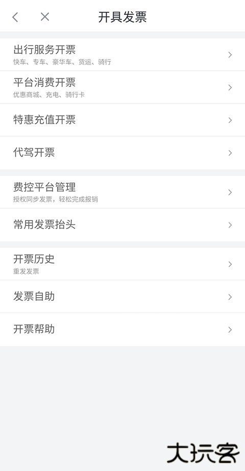 3、然后再选择【开具发票的类型】,如出行服务开票、平台消费开票、特惠充值开票等。