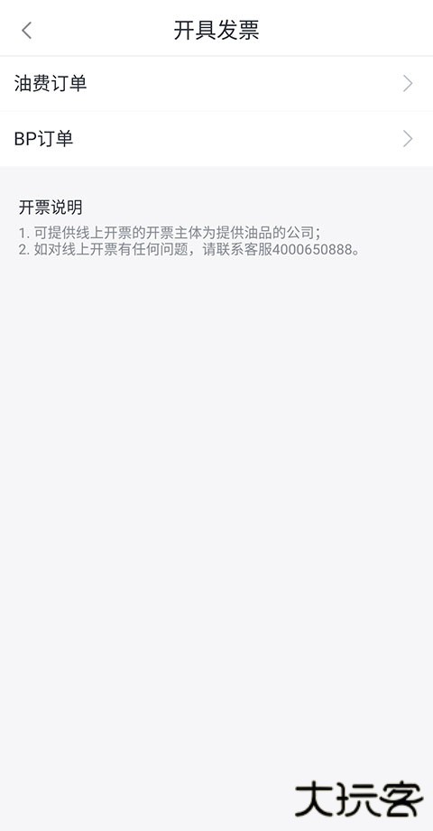 2、接着再根据自身实际的开票要求,选择【油费订单】或者【BP订单】。