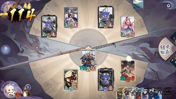 兵俑是一个容易被低估的强大式神,每局开始都可以增加护甲,还可以转换“攻击流”形态,(触发条件:兵俑在回合结束时处于战斗区)可以叠加3点力量,叠个两三回合对方就非常难受了。兵俑还具备爆发能力,配合海坊主叠够护甲,利用“尘刀”转化成力量甚至可以将对方一刀带走。