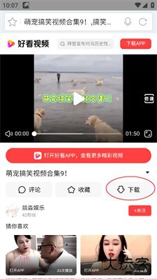 3、进入任意一个网页中观看视频,点击下方的下载。