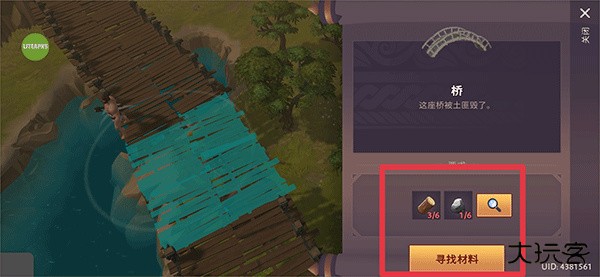 4、若材料不足时,你需要在地图中去材料所需的材料,收集完成后即可进行修复