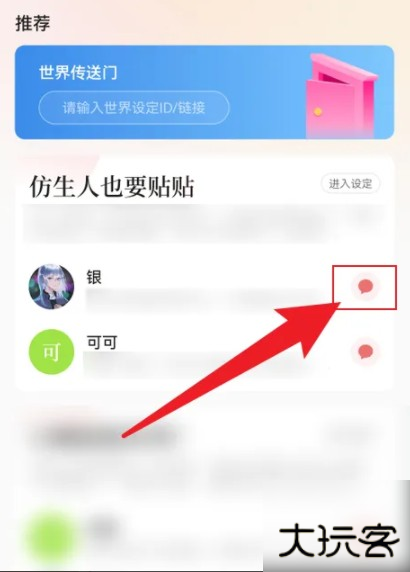 2、选择要对话的角色,点击后面的【聊天】图标。