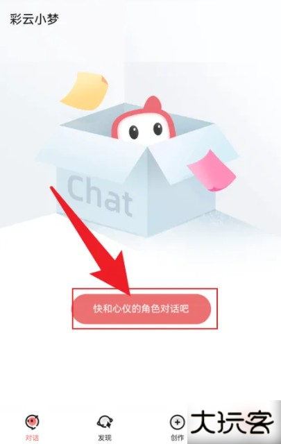 1、打开彩云小梦免费版软件,点击【快和心仪的角色对话吧】
