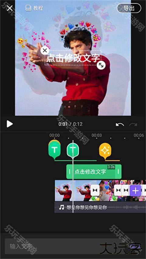 6、还支持添加文字,拖动自己将要添加的位置,点击下面的文字,输入自己想要说的话,确认就行了。