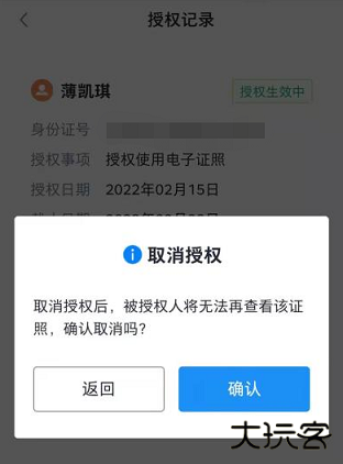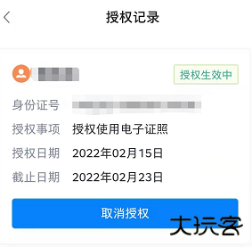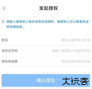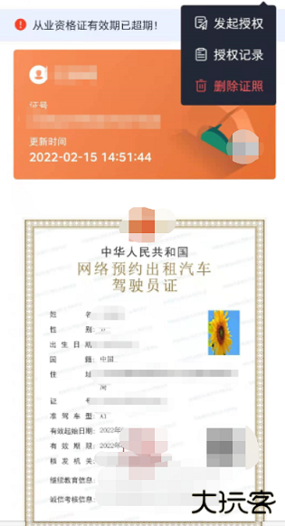 点击右上角呼出功能列表,点击证照授权,输入对应用户姓名、身份证、授权日期给其他用户进行证照授权。