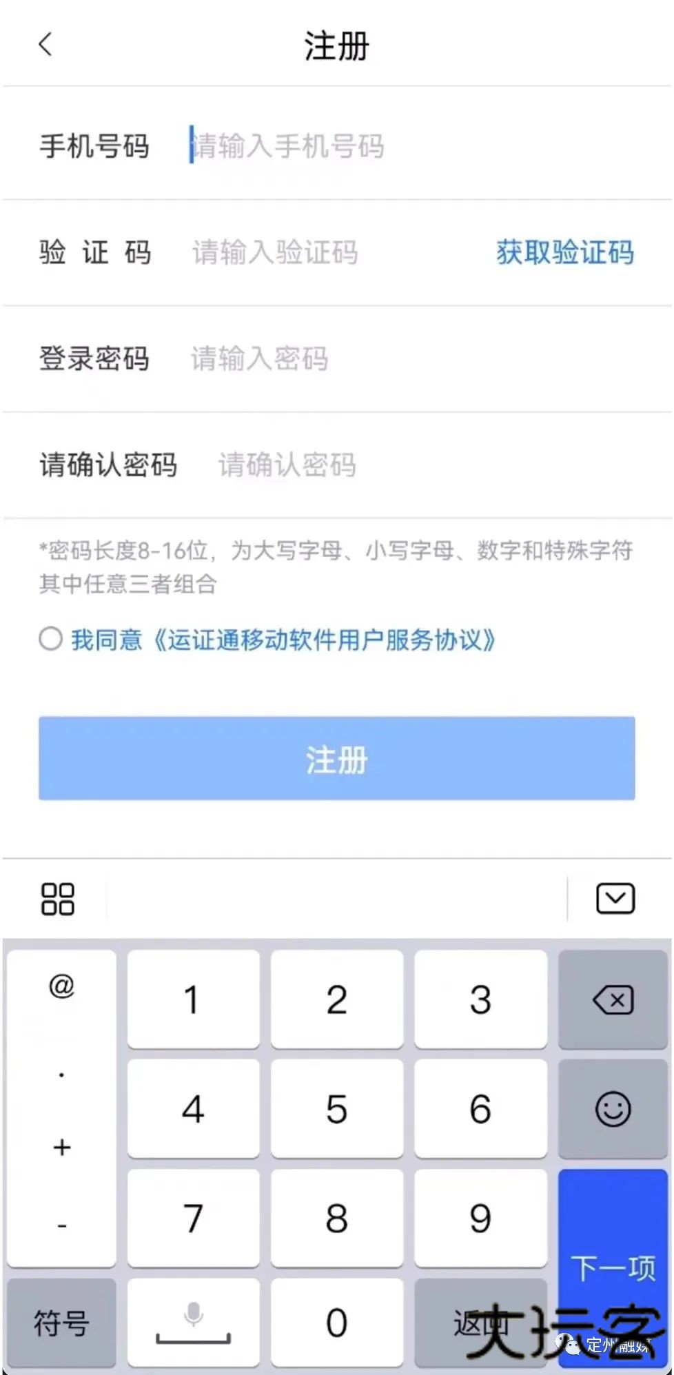 未注册用户,点击登录页面的【注册】进入账号注册页面,填写手机号、验证码、密码并勾选个人注册协议后,点击注册完成用户注册,注册完成后跳转到登录页面。