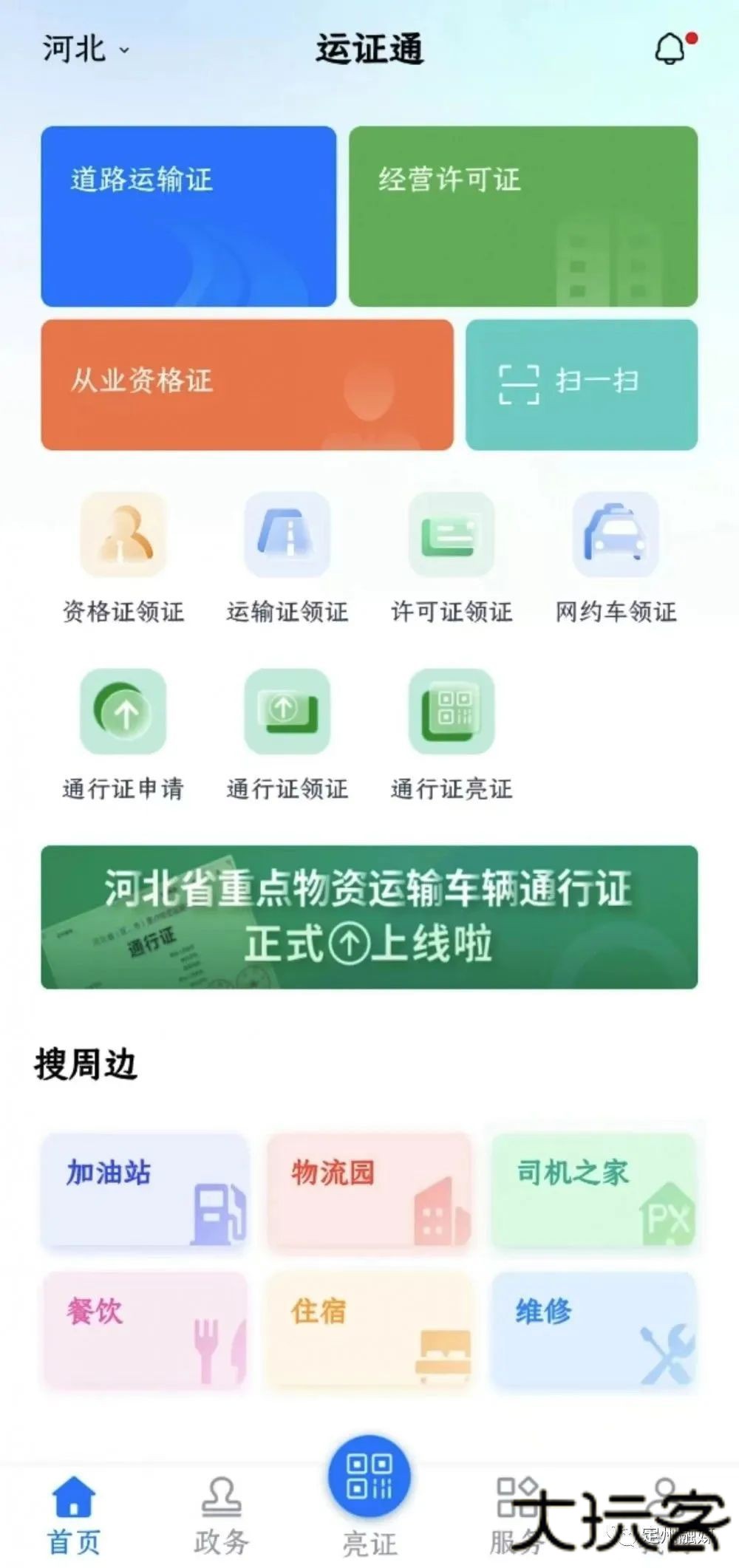 首页点击【运输证领证】图标,进入申领页。
