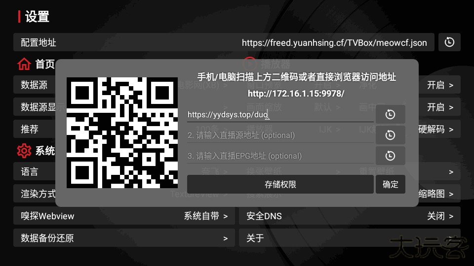 然后点击设置下面的“配置地址”,在第一个框输入配置地址,点击“确定”即可!