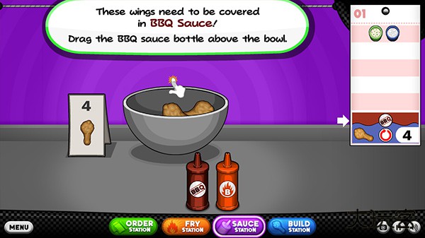2、来到老爹炸鸡店,玩家首先要接待客人;