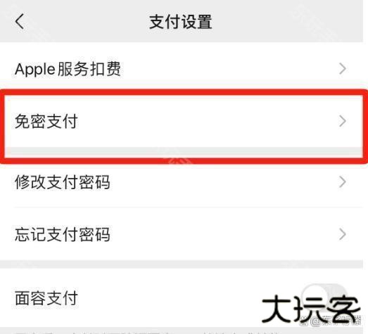 4. 在弹出的菜单中,选择【免密支付】选项。