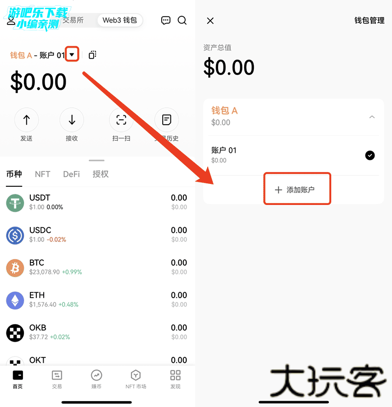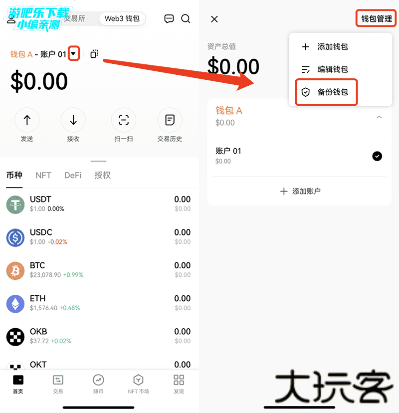 打开欧易 Web3 钱包,点击 ▼ > 钱包管理 > 备份钱包。