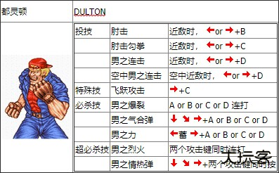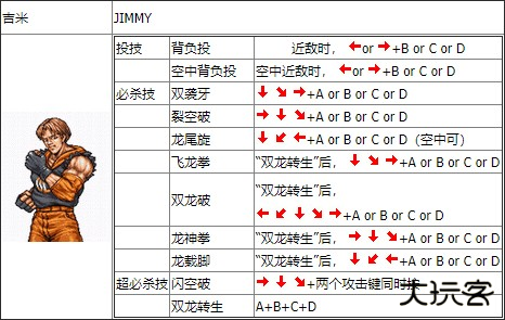 双截龙格斗出招表: