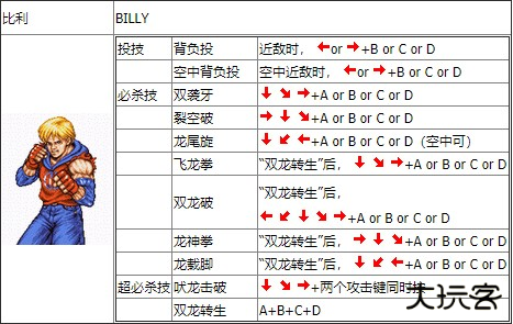 1、比利(Billy):男主,常称之为“小龙”,比利变身后的必杀技确实是龙,而且游戏名字就叫做《双截龙》,叫小龙还蛮贴切的。